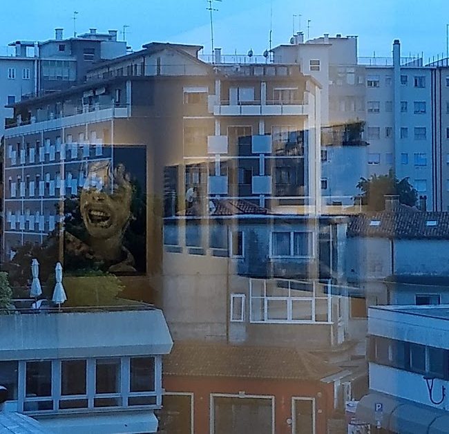 Quando scatto una fotografia cerco sempre di comunicare qualcosa, di raccontare una storia, reale o fantastica: insomma, un’immagine che parli al suo osservatore. Giovedì, mentre mi aggiravo per la mostra di Laffont alcune foto uscivano dalla sala attraveso le finestre per sovrapporsi come poster sulle pareti dei palazzi che si affacciano sul piazzale, ricreando un effetto stile “Blade Runner”, anche per il filtro azzurro che involontariamente le vetrate della sala riflettevano verso l’esterno.
